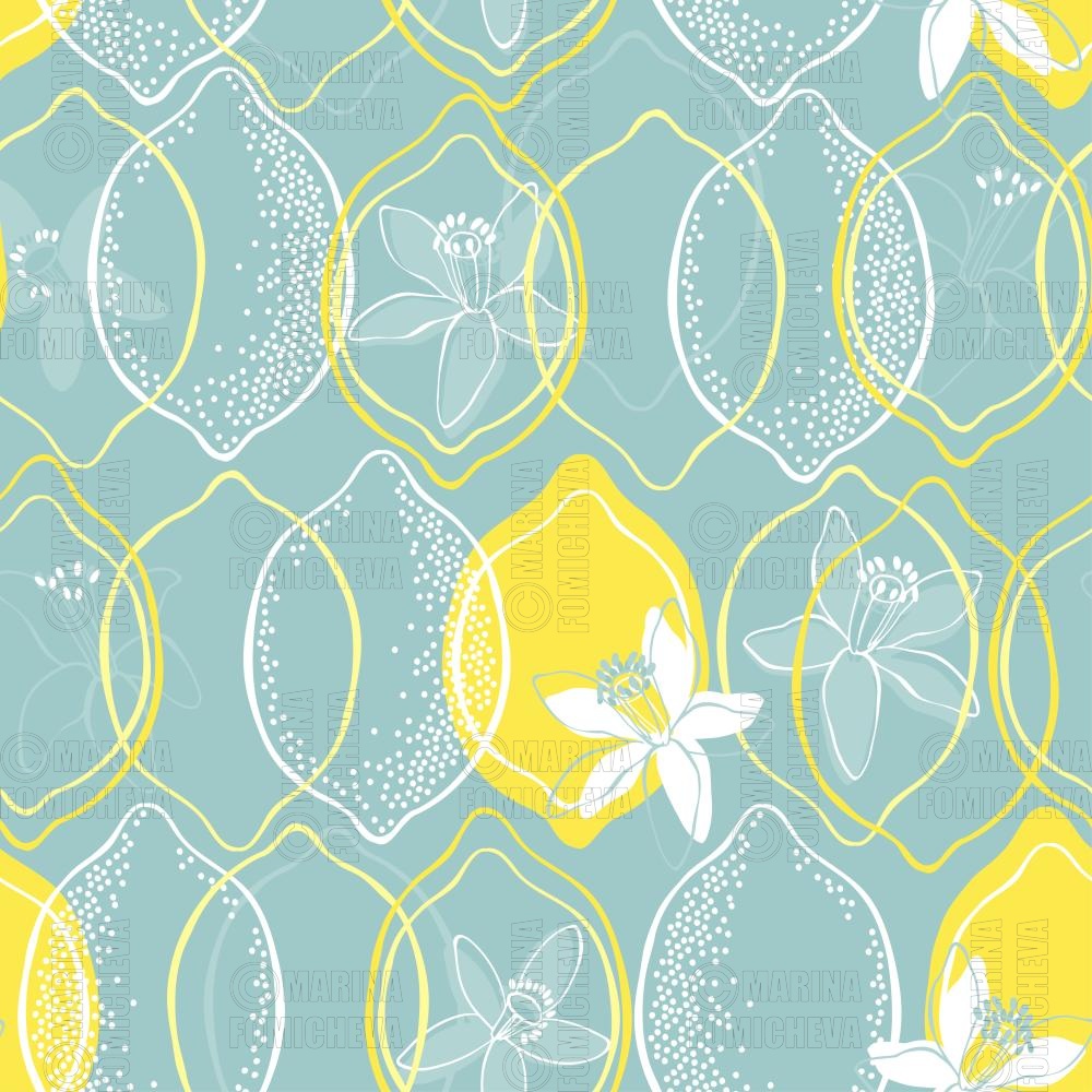 这款精美图案采用了柠檬与柑橘花朵在柔和浅蓝色背景上的艺术化设计。画家巧妙地将明快的黄白元素与清新的蓝绿色基底形成鲜明对比。柠檬的剪影由不同粗细的纤细线条勾勒而成,有的完全填充为黄色,有的则仅以轮廓线呈现。整幅设计中,白色柠檬花均匀分布,花朵带有细腻的花瓣与花蕊细节。许多水果表面点缀着细小的斑点,形成了质感效果,为图案增强了层次感。流畅的曲线造型赋予整体设计动感,而手工绘制线条的轻盈质感则是本幅插图的独特亮点。清新的配色让人联想到凉爽的夏日,如此活力洋溢的设计非常适合作为厨房纺织用品、柑橘类商品包装、壁纸或地中海风格室内装饰的理想选择。