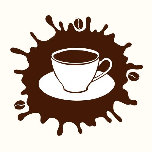 饮料。矢量图 杯中的咖啡、咖啡豆和‘咖啡’字样